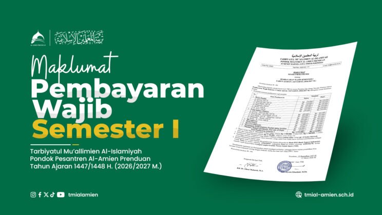 Maklumat Nomor: 036/TMI/B.2/III/2026 tentang Pembayaran Wajib Semester I Tahun Ajaran 1447/1448 H. (2026/2027 M.)