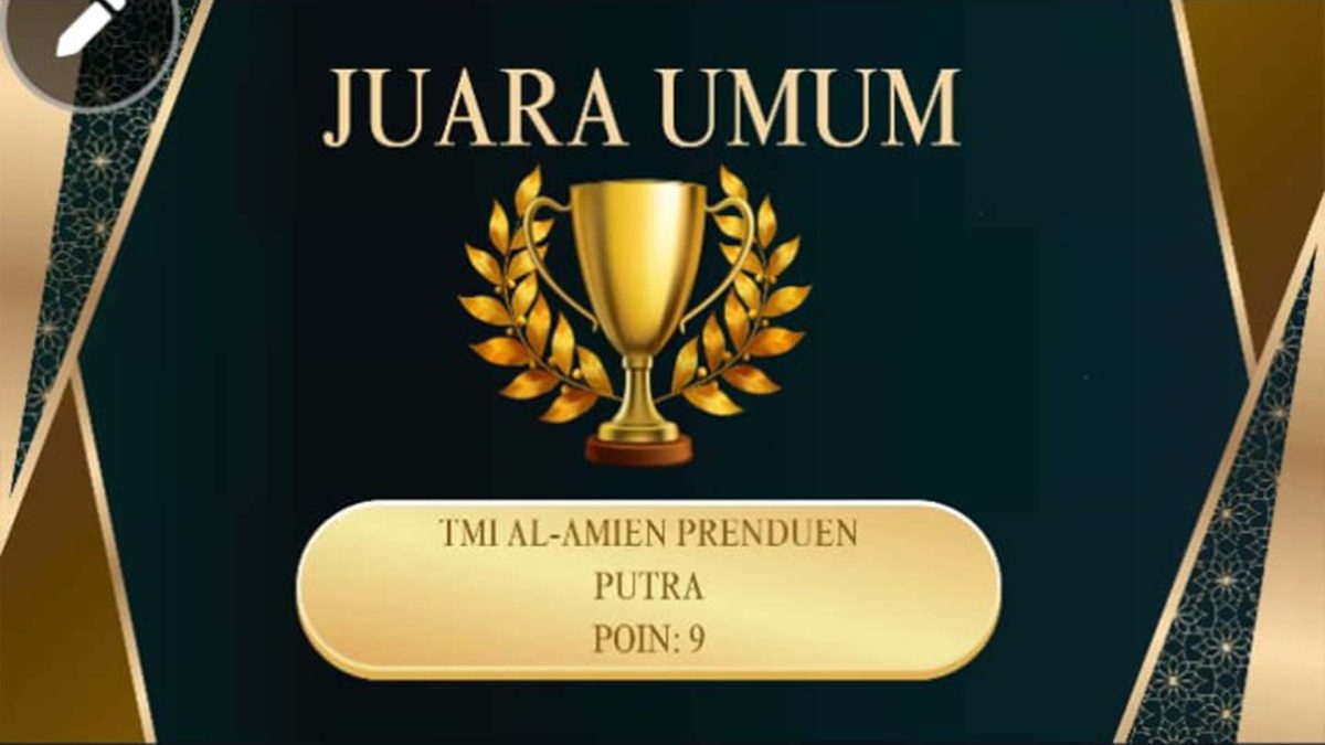 Al-Amien Prenduan, TMI – Delegasi TMI Al-Amien Prenduan kembali berhasil menorehkan prestasi gemilang, dengan meraih Juara Umum dalam ajang AFKAR III (Ajang Festival Elkaffah Akbar) Sabtu, (19/07). Kompetisi tingkat ASEAN tersebut diikuti oleh sekitar 1200 peserta dari Indonesia, Malaysia, dan Brunei Darussalam.