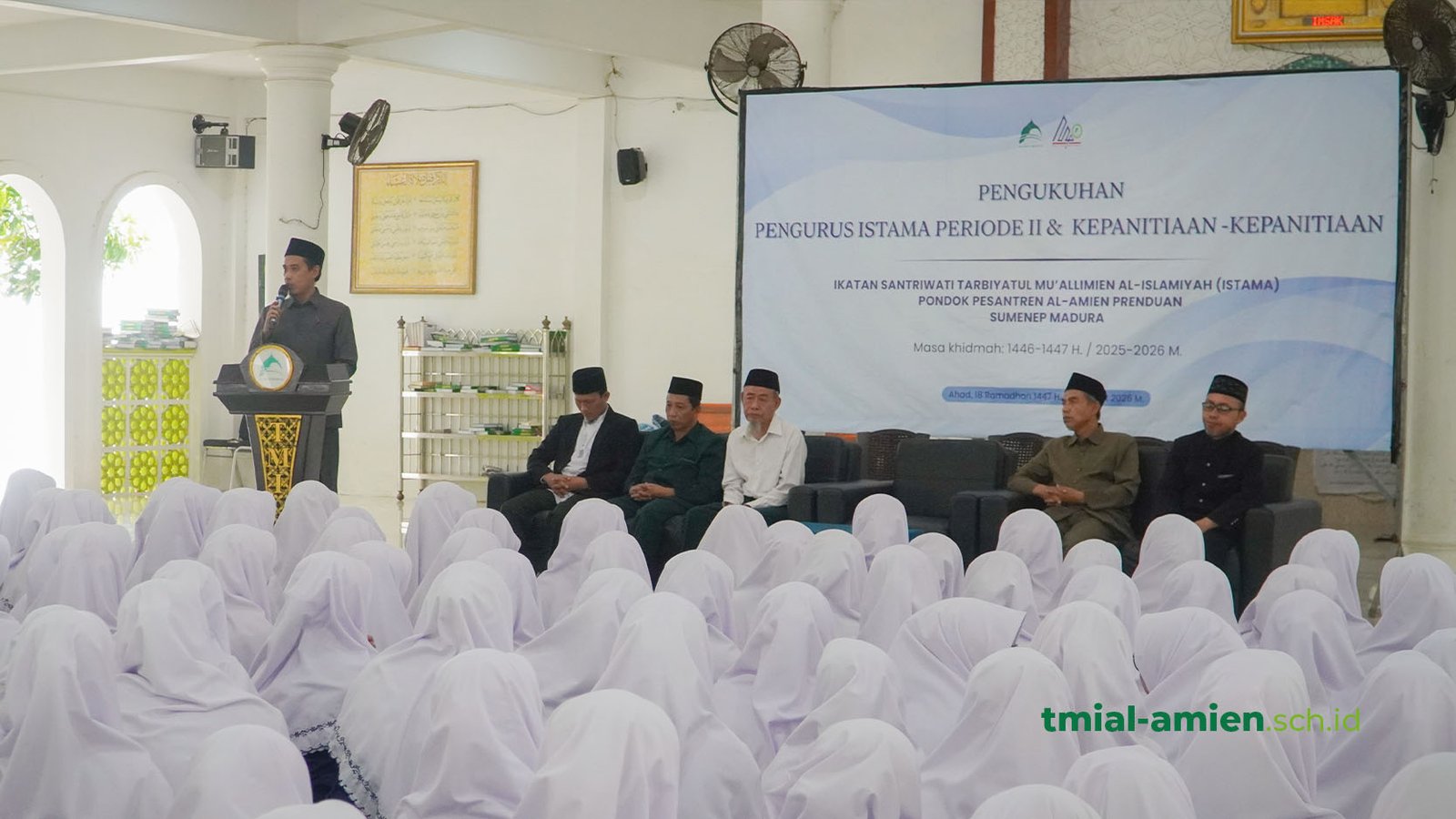 Al-Amien Prenduan, TMI – Suasana khidmat menyelimuti Mushola Asma Lathifa pada Ahad (08/03), bertepatan dengan 18 Ramadhan, saat pelantikan pengurus Organtri ISTAMA Periode II kembali digelar. Pada kesempatan tersebut, sebanyak 263 santriwati resmi dikukuhkan untuk mengemban amanah kepengurusan masa khidmah 1447/1448 H. (2026/2027 M.).