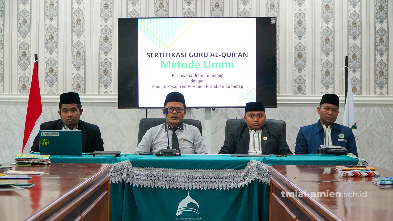 Al-Amien Prenduan, TMI – Ma’had TMI Al-Amien Prenduan terus meningkatkan kualitas pengajaran al-Qur’an, melalui program sertifikasi guru Metode Ummi, yang dilaksanakan pagi ini, Senin (20/04) di Meeting Hall TMI Putra. Program yang diinisiasi oleh Markaz Dirosat al-Qur’an (MDQ) tersebut, berkerjasama dengan Ummi Foundation Sumenep.