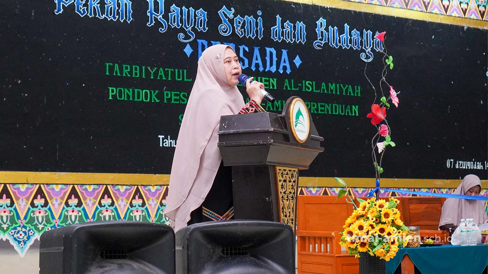 Ny. Hj. Nur Jalilah Dimyati, Lc., menyampaikan bahwa PERSADA merupakan momentum penting bagi para santri untuk menampilkan bakat dan kreativitas mereka, sekaligus mempererat kebersamaan di lingkungan pesantren.